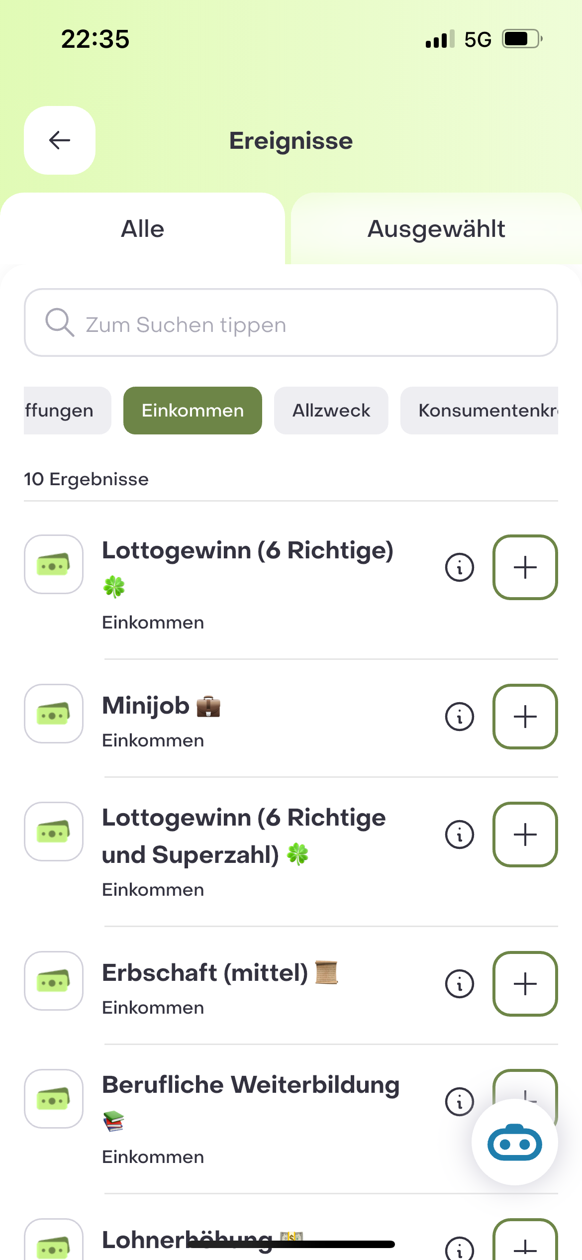 Was wäre, wenn…? Veränderungen im Berufs- und Privatleben und auch in Wirtschaft und Politik beeinflussen Deine finanzielle Situation. Hier kannst Du aus über 60 Ereignissen, all für Dich relevanten auswählen und simulieren. Hierzu gehören unter anderem ein früherer Renteneintritt, ein Aktiencrash, ein Sabbatical, die Geburt eines Kindes, aber auch der Lottogewinn kann simuliert werden. Deine aktuell ausgewählten Ereignisse siehst Du im Reiter „Ausgewählt“ und kannst Diese im Dashboard Zukunft separat ein- und ausschalten. Die Ereignisse sind in die Kategorien Standard (z.B., Beitragsstopp), Rente (z.B., früher in Rente: Ein Jahr), Dauer Rentenbezug (Auszahlung aller möglichen Renten über 5 Jahre), Auszeit daheim (z.B., Sabbatical: Ein Jahr), Auszeit woanders (z.B., Reise: Sabbatical und Reisen), Crash Aktienmarkt (z.B., Crash Simulation: Dotcom-Blase (2000)), Riester Zulagen (z.B., Riester: Zulage für ein Kind), Anschaffungen (z.B., Black Friday Einkauf), Einkommen (z.B., Lottogewinn (6 Richtige), Allzweck (z.B., Mit dem Rauchen aufhören) und Konsumentenkredit (z.B., Konsumentenkredit für 2 Jahre) eingeordnet. Die Ereignisse sind aktuell Durchschnittsannahmen. Du kannst Ereignisse auch zu Deinen genauen Daten anpassen. So kannst Du zum Beispiel „Hochzeit (100 Gäste)“ auf Deine Hochzeit mit 150 Gästen anpassen und Datum und Ausgaben anpassen.