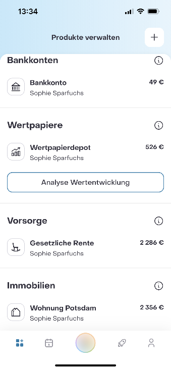 Produkt Dashboard: Übersicht über Deine aktuellen Finanzprodukte